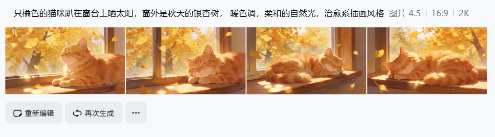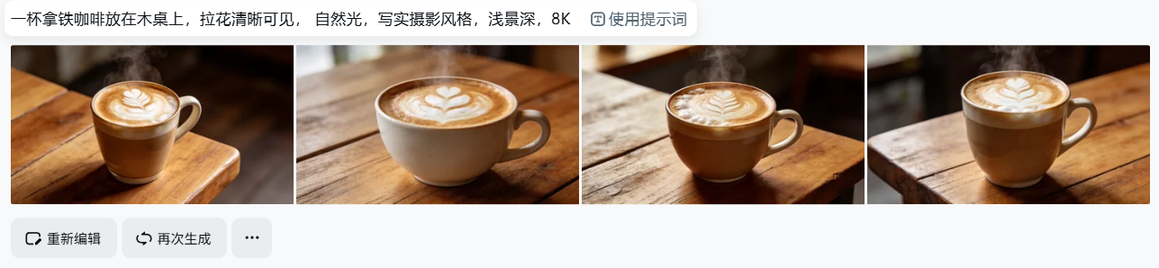 即梦 AI 通常会一次生成 4 张备选图片。观察这 4 张图片: